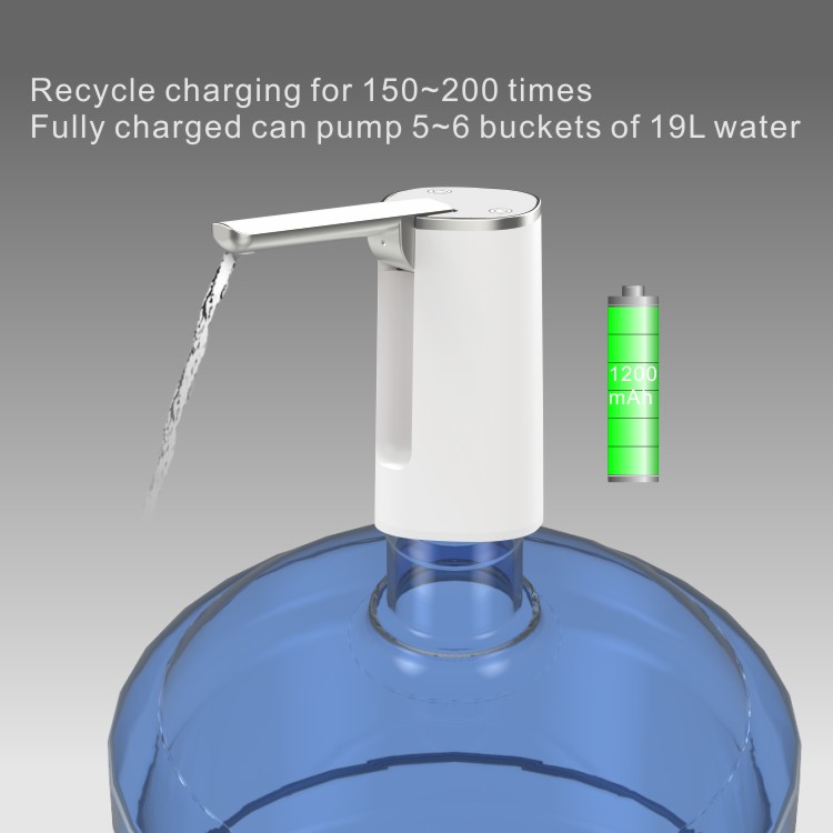1. Our water pump used with 18650# 800mAh lithium battery, also we would sorting & sealing by ourselves again. The lithium battery can recycled charged 150~200 times, one time charge can use for 3~4 buckets of 19L water.