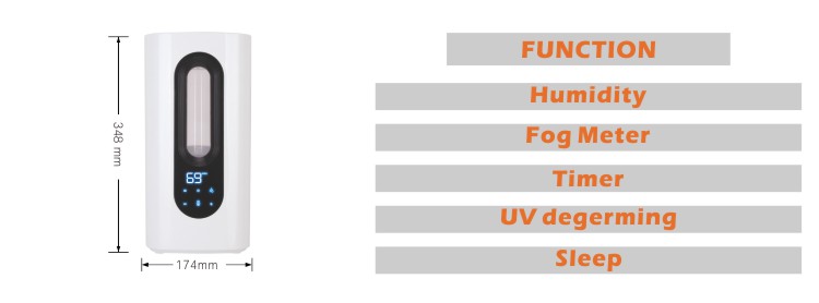 humidity, fogmeter, timer, sleep. (There is UV degerming function for optional)