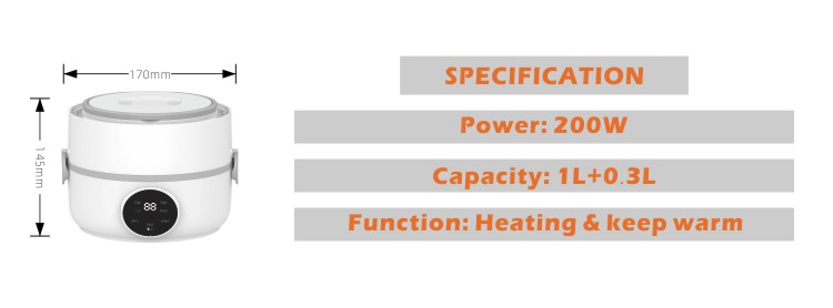 Specification: One layer with two stainless bowls (1.0L+ 0.3L)